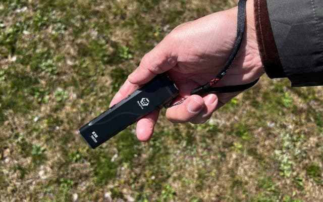 サイズは約12.1×2.9×1.5cm。手に軽く収まるミニマムモデル。
