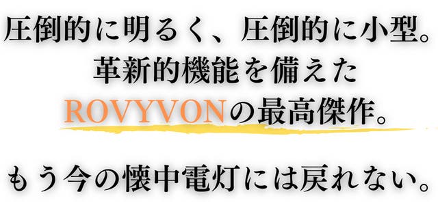 おそらく手に取っていただいた皆さまも、この優れた品質と圧倒的な明るさにきっと驚かれることかと思います。まさにE30はROVYVONブランドの名にかけて開発された、他に類を見ないLEDガジェットといえるでしょう。