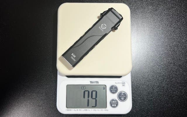 ジーンズのウォッチポケットにも収まる小型サイズながら、最大2600lmという圧倒的光量を誇り、なおかつバッテリー容量は前回のE3Plusの3倍を超えるものへと進化しています。