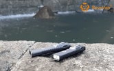そしてE90は懐中電灯としては珍しいレクタングル(長方形)デザインを採用。両サイドにはグリップ時のすべりを防ぐウォータープルーフリングが備わっています。