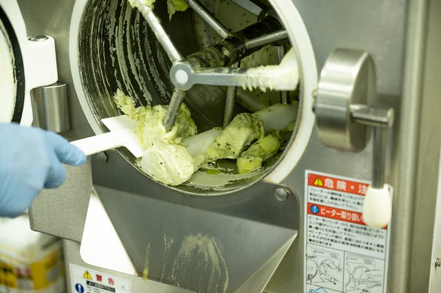 工場では、イタリアから輸入した最新のジェラートマシンを使用しています。35年のジェラート製造のスキルと最新のマシンを駆使してこのジェラートは完成しました!