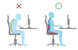 お尻を最大限後部に密着させ、腰を真っ直ぐにした状態で、正しくお座り下さい。