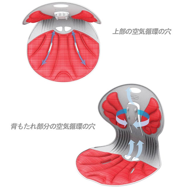 特長3. 通気穴を介した空気循環設計により、背中とお尻の快適さを維持