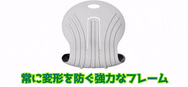 曲線型の底部は、体が左右に揺れても骨盤まで一緒に動くように設計され、脊椎が真っ直ぐに維持できるようにします。フレームの強力な復元力とテコの原理により、脊椎と腰の正しい姿勢を維持させます。