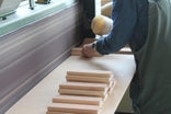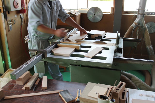 木には自然にできたフシや穴があります。その部分がなるべく表面に出ないように考えながら裁断をしています。