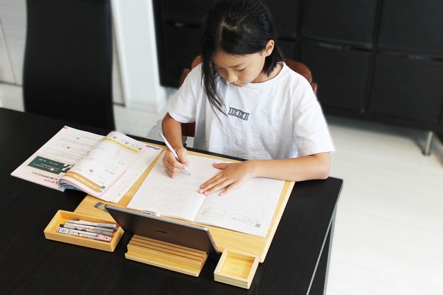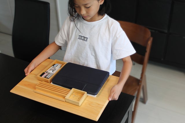 ワーキングボードがあることで、ペンやタブレットなどもスッキリと使うことができます。身の回りを整理することで、頭の中も整理できると言われています。