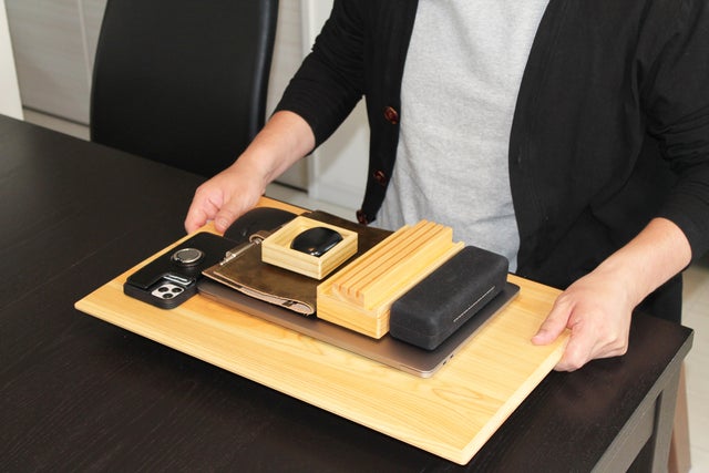 ダイニングテーブルは、お食事をする場所でもあります。移動したいときには、ボードの上に荷物をまとめて楽に移動できます。