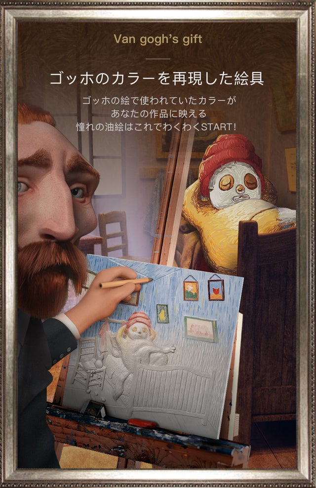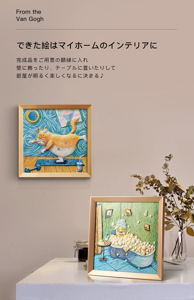 本製品はゴッホの立体手法を真似し、浮き彫りキャンバスをご用意しました!ゴッホの絵にあったぐるぐるした渦やうねりまでレリーフで表現されています。初心者でも失敗を心配せず、気持ちよく塗っていけば、素晴らしい絵が期待できます♪