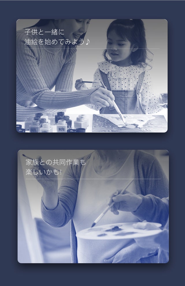 油絵を仕上げるために一緒に考えて、話して、やり遂げるまで頑張る、という過程から、家族コミュニケーションを深めて盛り上がることも期待できるでしょう♪