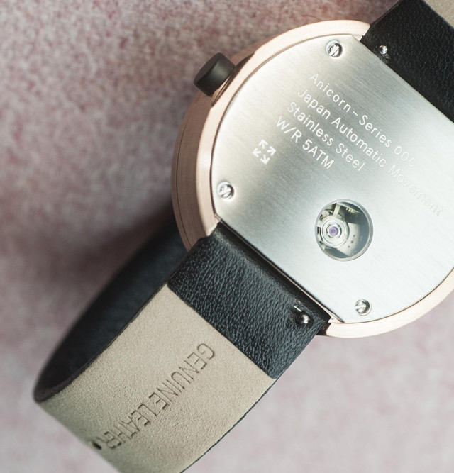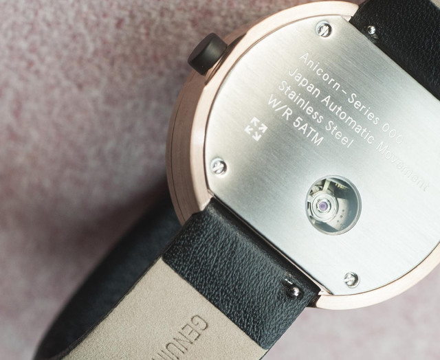 アニコーンは、"デザイン + 活字+ メカニズム"を時計に組み込む事が出来ないか、と言うアイデアからスタートしています。中古腕時計の販売をする傍ら、2年に渡って時計の針が不要、回転するディスクから秒、分、時間を垂直に読み取ることができる"同心円ディスクシステム"の開発を行い、オリジナル時計を作る事が出来ました。