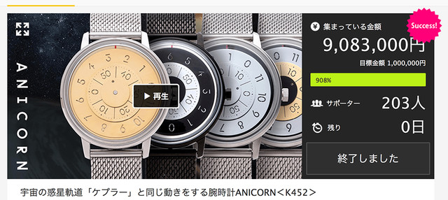 こんにちは、ANICORNです。私たちは2016年に、宇宙の惑星軌道「ケプラー」と同じ動きをする時計、ANICORN<K452> を Makuake で展開し、200人以上のサポーターに900万円以上のサポートをしていただきました。