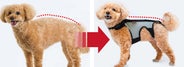 - 後ろ足の引き上げベルトが下がったお尻を引き上げ、正しい姿勢に導いてくれる!