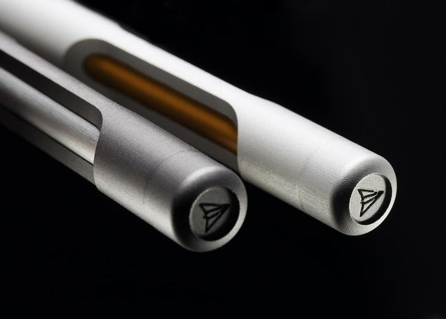 大きな切り欠き部分から中軸が露出している特殊なデザインからは、一般的なボールペンの概念とは異なる、圧倒的な個性を感じ取れます。