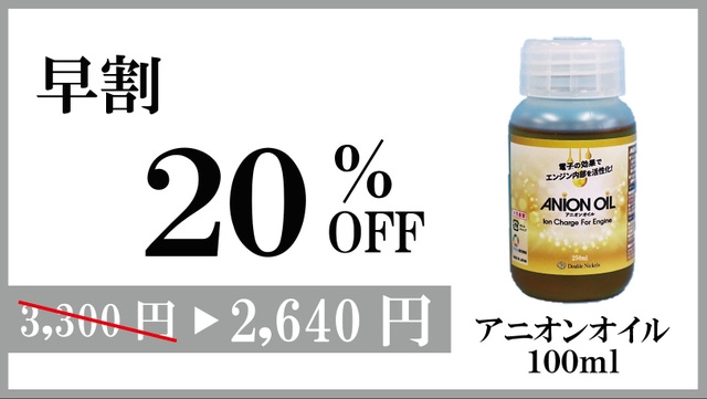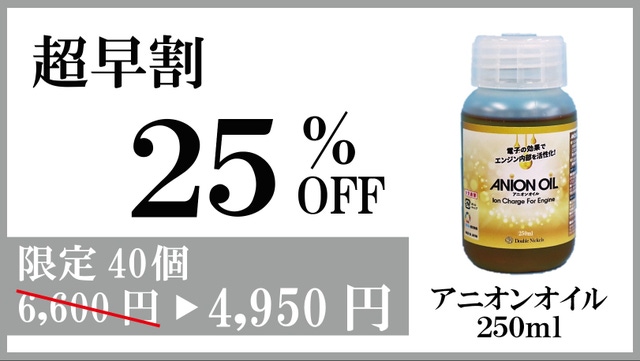 (エンジンオイル規定量が 10 リットルの場合はアニオンオイルを 500cc 注入下さい。)