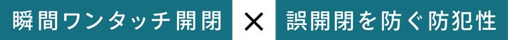 正面からは開き口が見えない防犯性がありながら、瞬時に開閉が可能。
