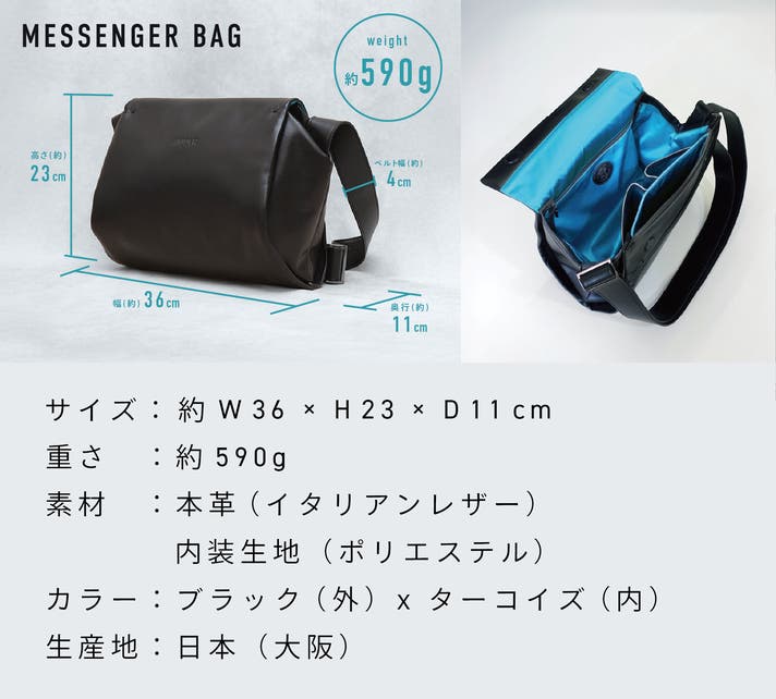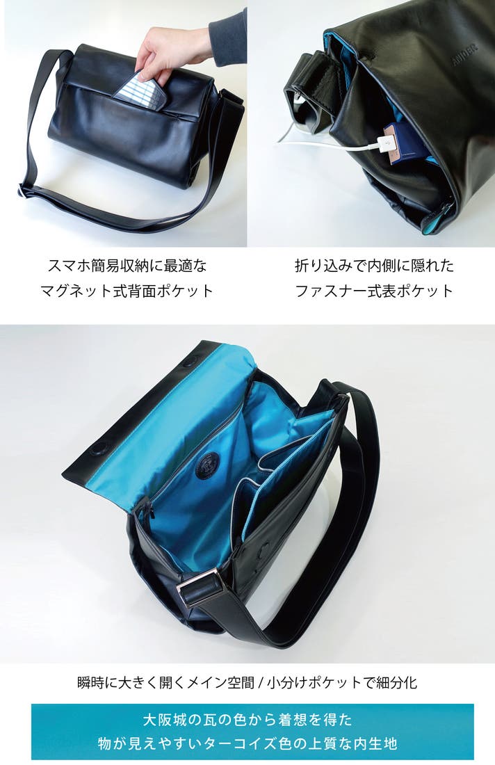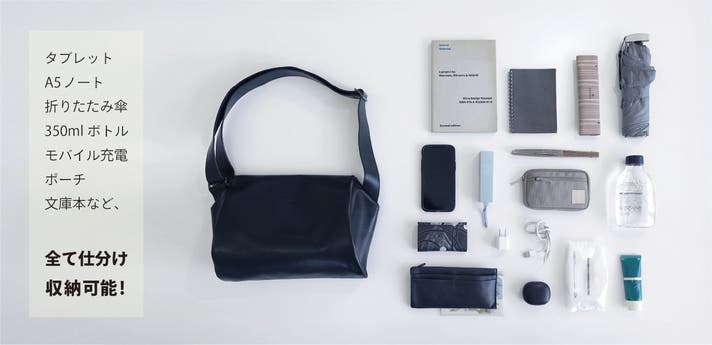 - 立体形状で軽やか、上質な本革メッセンジャー。ミニマムの中に、仕分けを極めた収納力と機能性。