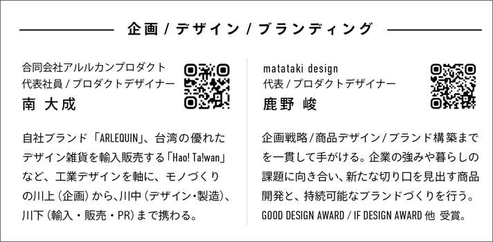 企画・デザイン・ブランディングには、以下の2名のプロダクトデザイナーが参加