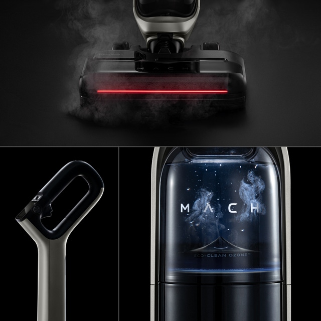 「マッハ V1 Ultra」は、従来のスティック掃除機、モップクリーナー / フロアワイパー、スチームクリーナーの機能を全て1台で実現できるだけでなく、ブラシの自動洗浄に自動乾燥、床の乾燥機能まで兼ね備えた、まさに掃除機の新たなカテゴリを切り開く存在です。