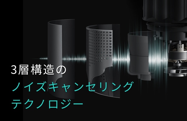 独自の3層構造のノイズキャンセリングテクノロジーにより、掃除中の騒音を最小限にとどめることを実現しました。