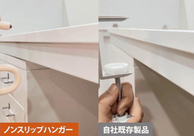 既存の製品はサイズや調節可能な範囲が限られていますが、ノンスリップハンガーは自由に厚さを調節出来るのでハンガー購入時のサイズ間違いを防ぐことができます!