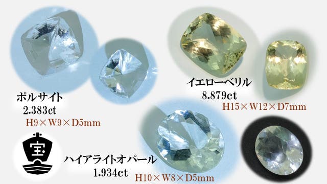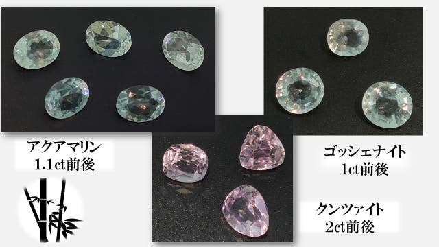 トルマリン・ダンブライト・グロッシュラーライトガーネットアンドラダイトガーネット・ポルサイト・イエローベリル・オパール・アクアマリン・ゴッシェナイト・ジルコン・クンツァイト・シンハライト・リューサイト・アパタイト・モルガナイト・スポジューメン