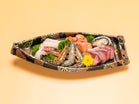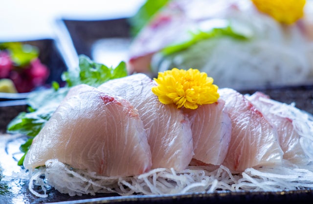 ・舟盛:活鮑(養殖)、活車海老(養殖)、ブリ(養殖)、ノルウェイサーモン(養殖)、真鯛(養殖)