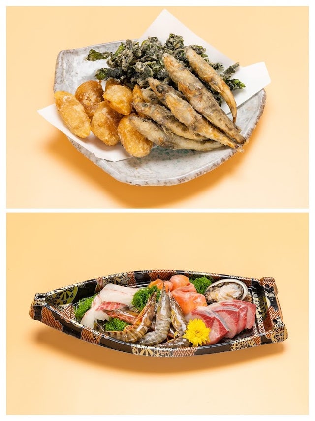 ・舟盛は約3~4人前、揚げ物は約9人前です。
