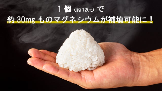 1個(約120g)食べるだけで、約30mgのマグネシウムが摂取できます。朝昼晩のごはんをこの「塩職人の塩おむすび」にするだけで不足しがちなマグネシウムを効率よく摂取できるようになります!