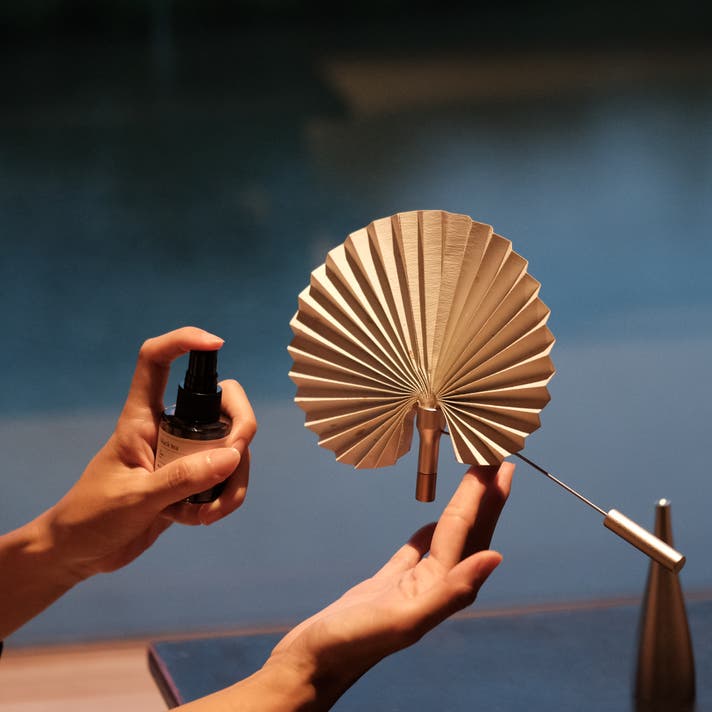 お好みの香水やルームスプレーを折り紙状のアートペーパーに吹きかければ、お気に入りの香りがやさしく広がり、空間をふんわりと包み込みます。繊細に折り重なったアートペーパーは、どんな空間にも自然に溶け込み、穏やかな時間を演出します。"kami"は、お手持ちのお気に入りの香水やフレグランスと組み合わせても楽しんでいただくことができます。
