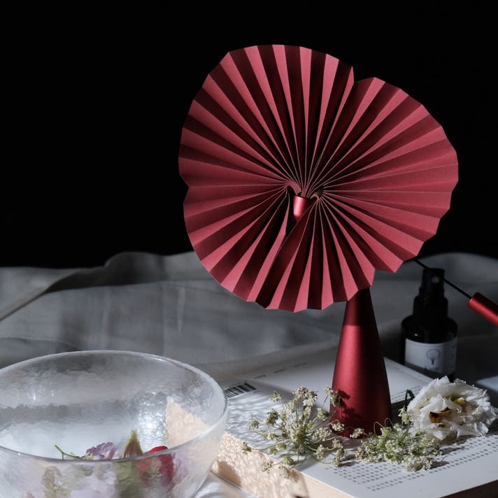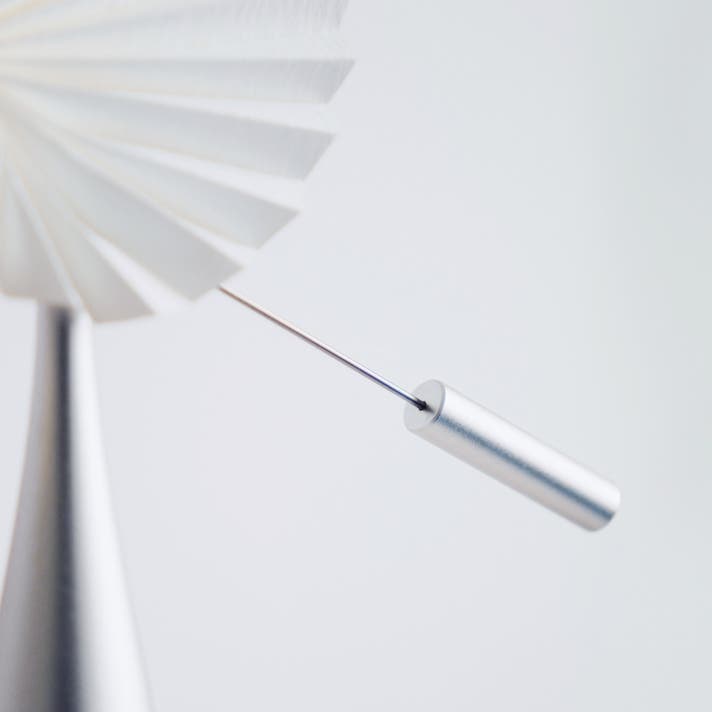 "Kami "は、ゆらぐ空気の流れに合わせて柔らかく動く"折り紙(アートペーパー)”に吹きかけたお気に入りの香りを、ゆっくりと空間に広げてくれます。自然からインスピレーションを得た"折り紙”のデザインと、無駄を省いたシンプルで洗練された台座のデザインは、さまざまな空間に落ち着きとやさしい調和をもたらしてくれます。