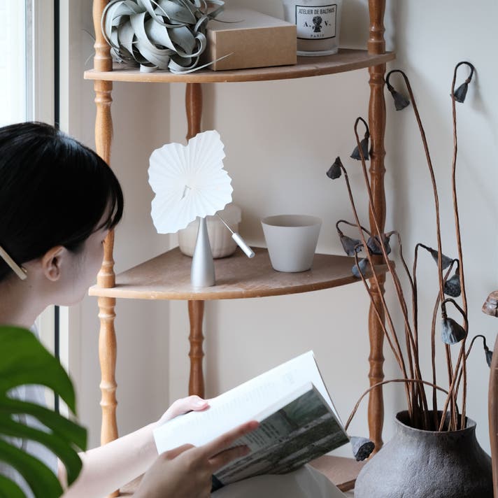 例えば、午後のやわらかな光と、そっと流れる風が、暮らしを満たす瞬間。窓を開けて、風を迎え入れる。香りが空間に広がり、"Kami "の折り紙状のアートペーパーがやわらかに揺れると、心も次第にほぐれていきます。