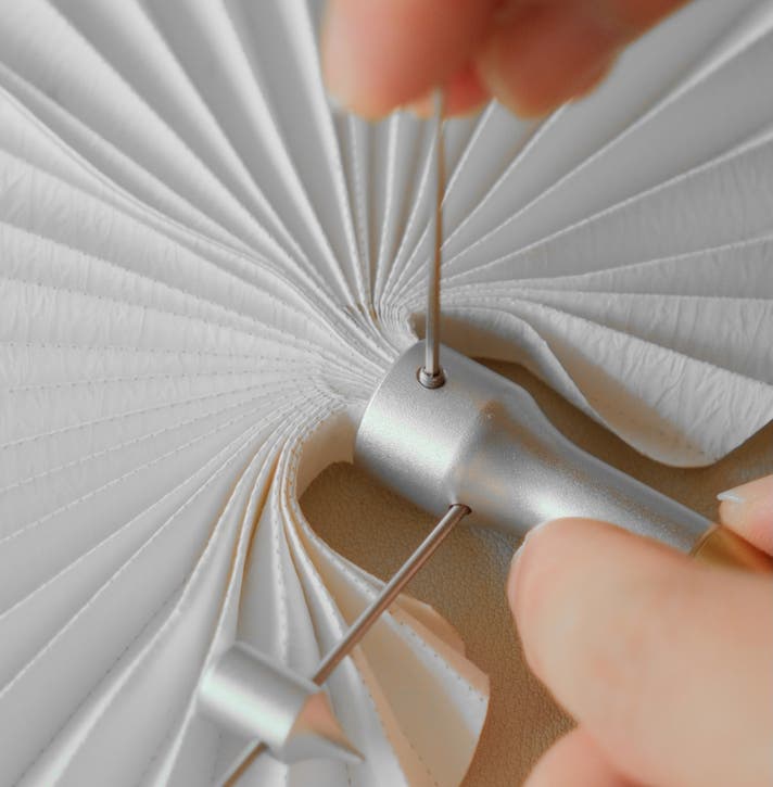 Kamiの折り紙状のアートペーパーは、小さなネジで簡単に取り替えられる仕様になっています。空間に合わせてスタイルを変えながら、長くお使いいただけます。