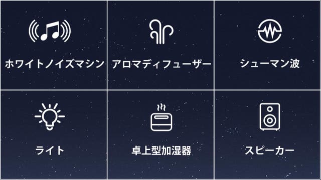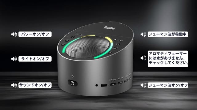 - 多機能!アロマディフューザー、加湿器、スピーカー、シューマン波、ホワイトノイズマシン、ライト!