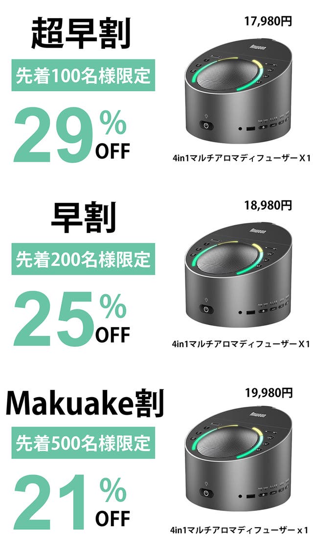 【Makuake割21%Off】4in1マルチアロマディフューザー×1