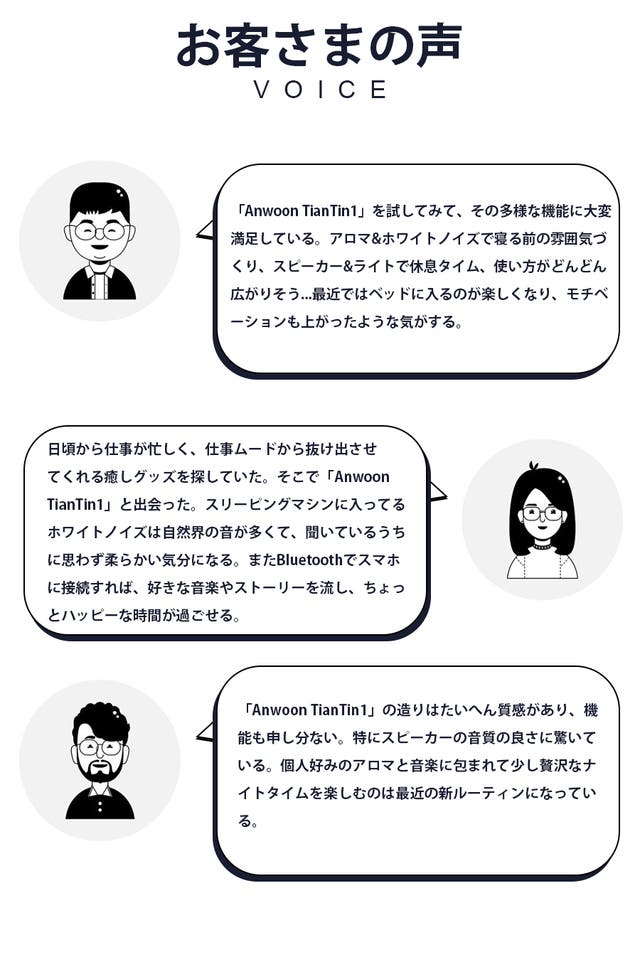 Anwoon TianTin1は、アロマ、スピーカー、シューマンなどの多数の機能を一台に集約した特許デザインです。ホワイトノイズなどでくつろぎ体験を提供し、休息タイムのムード作りにピッタリの製品です。