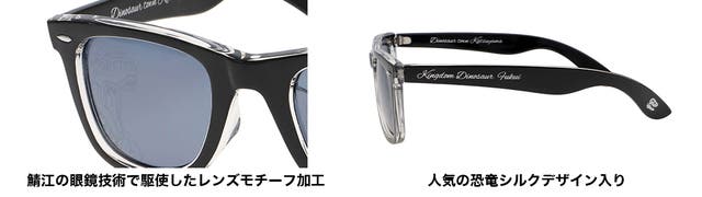 鯖江の職人技術により、レンズ上には大胆に恐竜のデザインを施しております。さらに4種類の恐竜からお選びいただくことができます。
