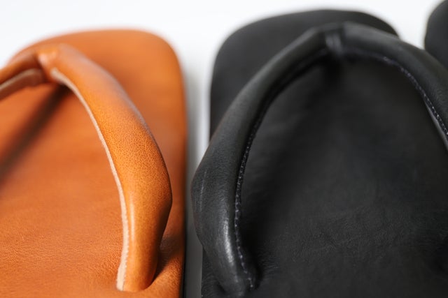 - 国内有数のタンナー「栃木レザー」のヌメ革を天板に使用!熟練のタンニンなめしにより大人顔の雪駄に