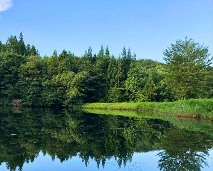 水深15m以上ある山の中腹にある澄んだため池。