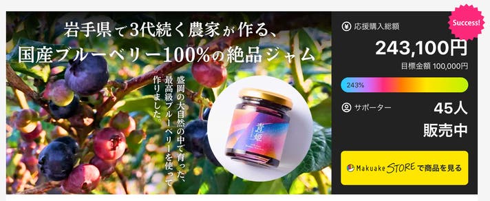今まで2回のマクアケに挑戦し、多くの方に私たちの商品をお届けすることができました。そして今回3回目のプロジェクトでは私達が岩手県の壽園ファームで育てた2025年度のブリーベリーをお届けします!
