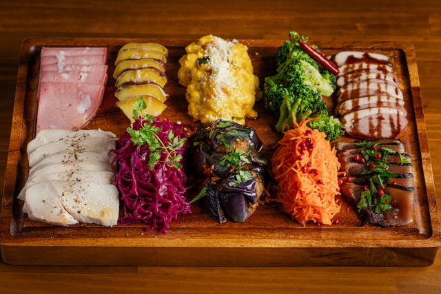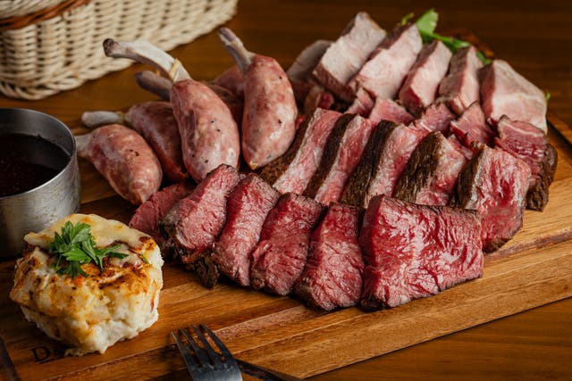 ほどよく焼き上げた豚肉と牛肉のダブルメインで、お腹も心も完全に満たされてください。