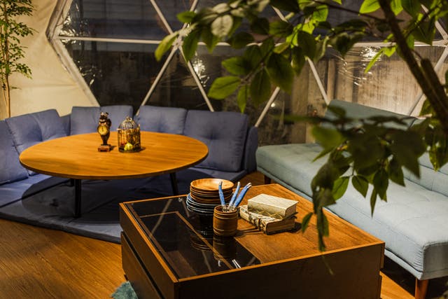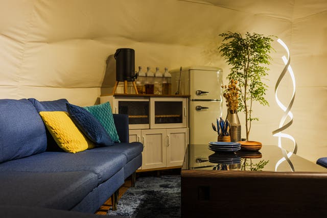 テント内は家具に彩られた空間は洗練されており、上質な雰囲気。