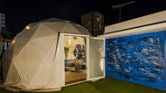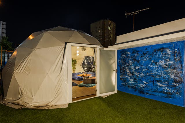 屋上のグランピングテントは、まさに都心のオアシス。大人数での集まりに。