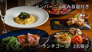 【追加・8月利用開始】シャンパーニュ飲み放題付きランチコース 2名様分+会員特典