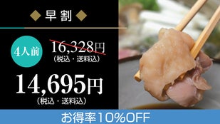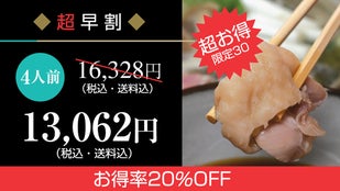 一般販売価格:4人前16,328円(税込み・送料込み)限定30食【超早割20%OFF】13,062円