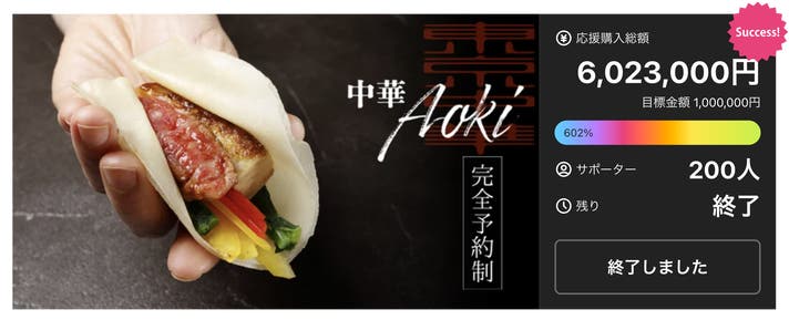 『中華Aoki』は、過去Makuakeの掲載でも多くの応援購入をいただき、たくさんのお客様に特別な空間とお料理をご提供させていただいております。