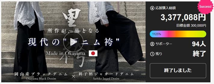 前作「現代のデニム袴」は94人の応援購入いただき、和の所作美と岡山デニムの風格を融合した一着として高い評価を得ました。