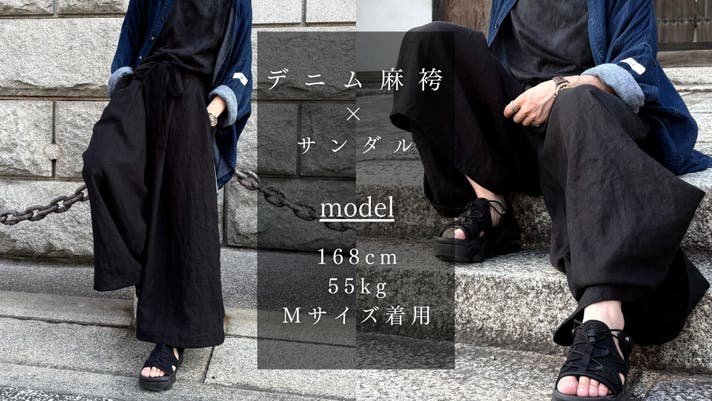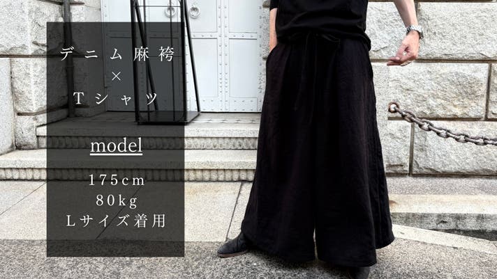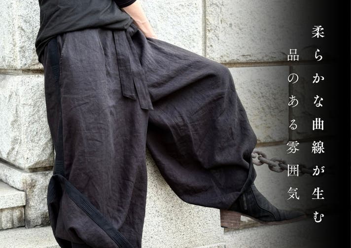 - 世界三大高級麻フレンチリネンと岡山産ジャガードデニムが融合し、極上の履き心地の『袴パンツ』