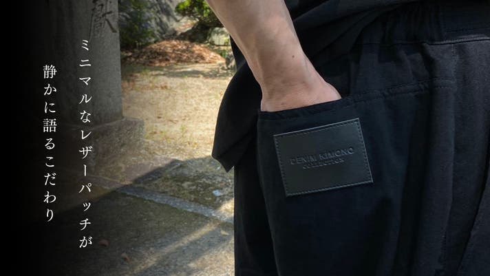 背面にはブランドロゴ入りの「レザーパッチ」を控えめに配置。主張を抑えたミニマルなサイズ感が、さりげない上品さを演出します。背中に宿る、静かな“和の品格”。