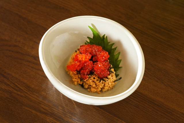 すじこをたくさん食べる県、青森県。そんな青森のすじこは生臭くなく、見事な塩梅の塩気で、濃厚な旨味です。さらに納豆のねばねばがプラスされることで、すじこの旨味が一層引き立ちます。青森県を代表する作家、太宰治ゆかりの郷土料理でもあります。
