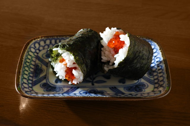青森のおいしいすじこを海苔巻きにしました。当店の人気メニュー!